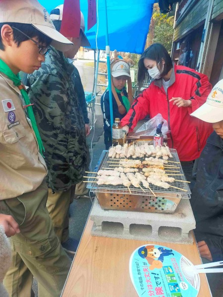 毎年12月にクリスマス会を行っています。ケーキ作り、各隊模擬点を隔年ごとにしています。今年は各隊模擬店を開催し、ボーイ隊は焼鳥を焼いて参加者に提供しました。