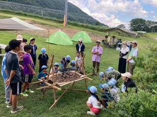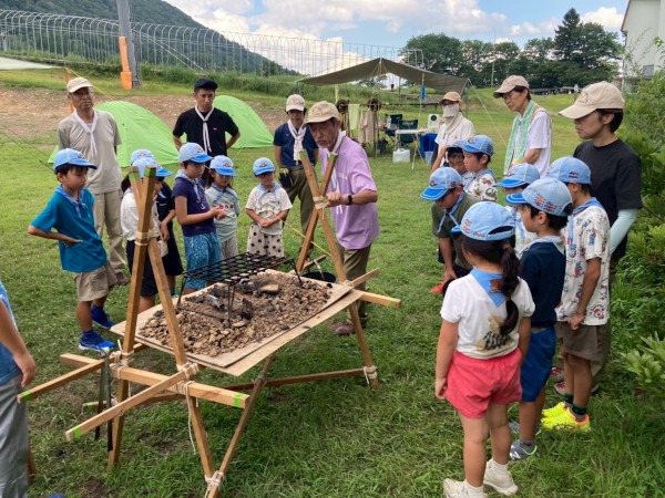 ボーイ隊、ベンチャー隊、ローバー隊のサイトに見学に行きました。お兄さんお姉さん達が作ったたちかまどで調理する事を知り、ビーバー隊はびっくり!興味津々でした。
