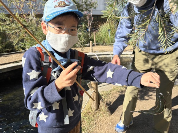 ようこそ、ボーイスカウトの世界へ!自然の中で、みんなと共に仲良く遊び、楽しみや喜びを分かち合います。今日はお魚釣りに挑戦。初めての成果に大満足♪