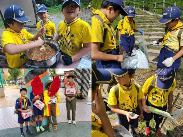 カブ隊は、ハイクやキャンプで友だちと一緒にがんばったり、町の清掃活動や募金活動で人の役に立つ喜びを学んでいます。