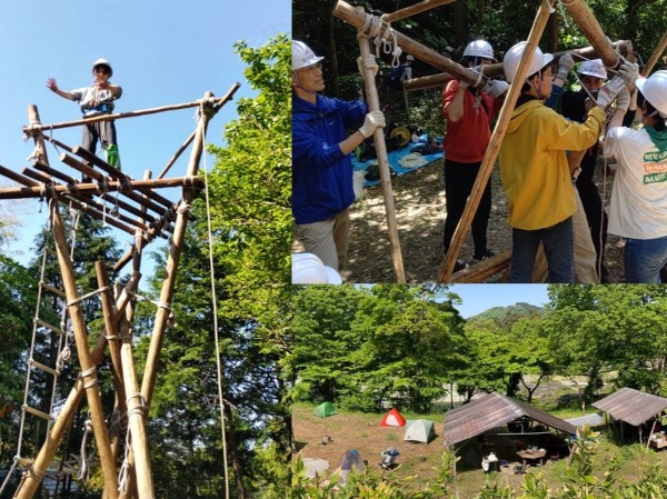 丸太を組んで塔や橋を建てる大型構築物など、高度な技術とチームワークで本格的なチャレンジを実現!計画、実行、達成の喜びを共有しよう。君の挑戦を待つ!